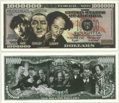 | NN0029 | $1,000,000, 2009, The Three Stooges Commemorative Bill | $0.50 | $2.00 | $3.50 |