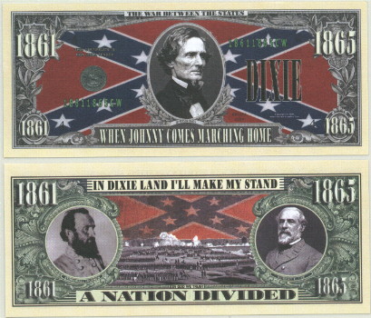 | NN0102 | Dixie Dollars - Confederate bill | $0.50 | $2.00 | $3.50 |